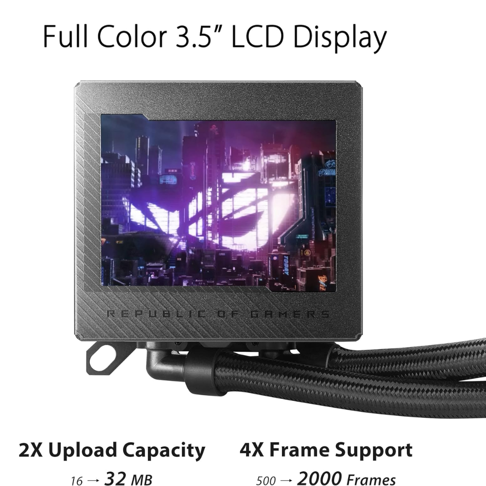 توفر شاشة ال سي دي المدمجة مقاس 3.5 انش في كتلة المضخة مراقبة فورية لترددات الساعة والجهد ودرجات الحرارة وسرعات المروحة وتدفق المياه أو صور GIF المخصصة.