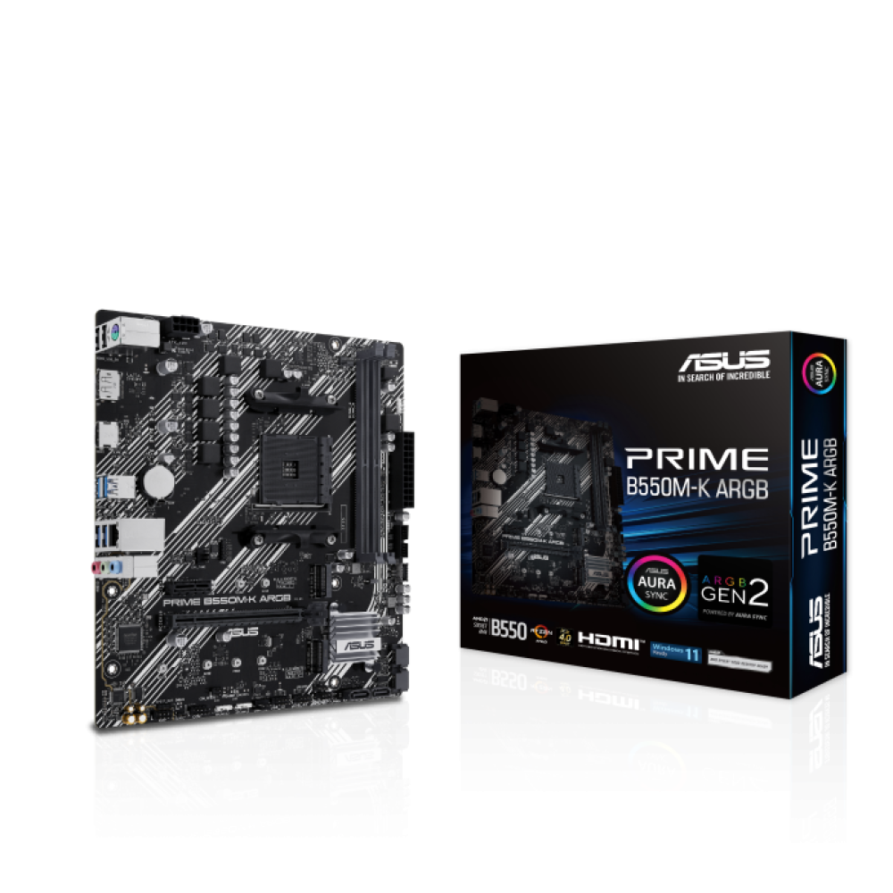 استمتع بأداء موثوق مع لوحة الأم ASUS PRIME B550M-K ARGB، بدعم معالجات AMD Ryzen، وذاكرة DDR4، وتقنية PCIe 4.0، مع إضاءة ARGB لإضافة لمسة جمالية مميزة لتجميعتك.