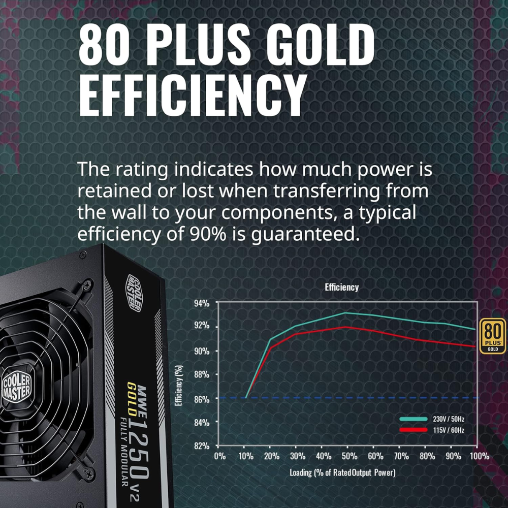 ام دبليو اي جولد V2 هي الخطوة التالية في تطور سلسلة الكفاءة المعتمدة من كولر ماستر 80 بلس جولد. تم إنشاء هذه السلسلة من وحدات إمداد الطاقة لجعل الانتقال من إمدادات الطاقة ذات التصنيف الأبيض أو البرونزي إلى الذهب أسهل وبأسعار معقولة للمستخدمين النهائيين. وتحقيقا لهذه الغاية، يواصل هذا الجيل الجديد من وحدات ام دبليو اي الذهبية هذه الرؤية مع عدد من التحسينات على التصميم الأصلي مع تغيير ضئيل في السعر. نفذت كولر ماستر ترقيات ذات مغزى إلى MWE Gold الأصلي من شأنها تحسين تجربة المستخدم بمجرد إخراجها من الصندوق